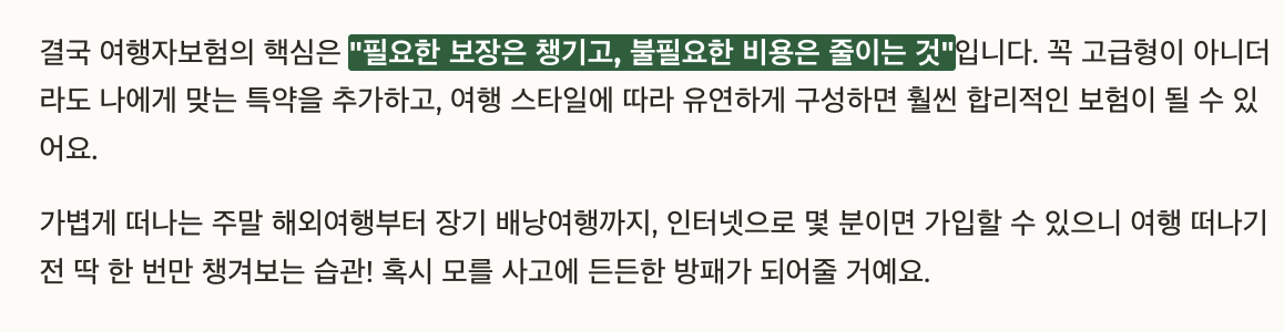꼭 고급형이 아니더라도 나에게 맞는 특약을 추가하고, 여행 스타일에 따라 유연하게 구성하면 훨씬 합리적인 보험이 될 수 있어요.