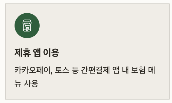 | 제휴 앱 이용 | 카카오페이, 토스 등 간편결제 앱 내 보험 메뉴 사용 |