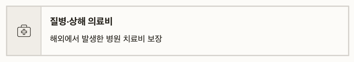 | 질병·상해 의료비 | 해외에서 발생한 병원 치료비 보장 |