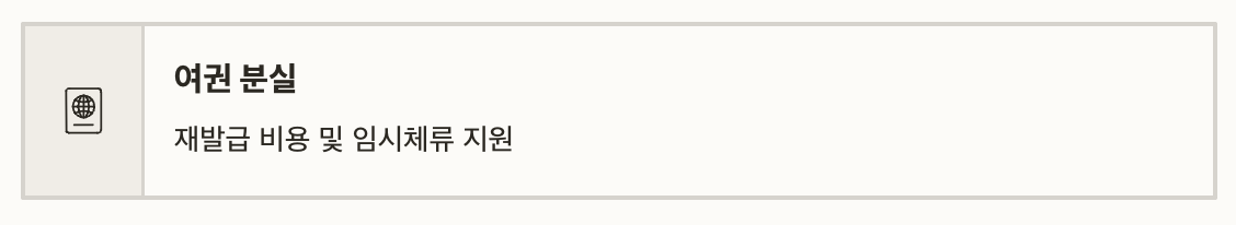 | 여권 분실 | 재발급 비용 및 임시체류 지원 |