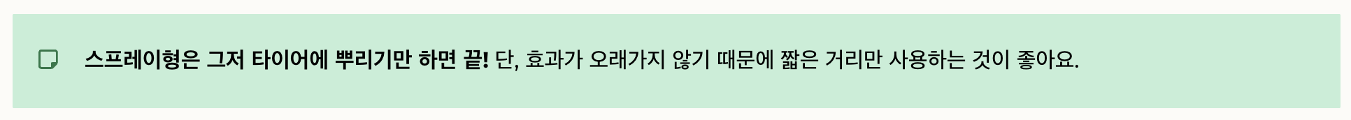 스프레이형은 그저 타이어에 뿌리기만 하면 끝!