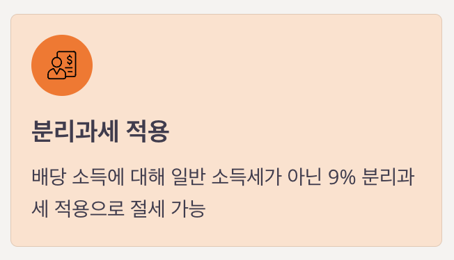 배당 소득에 대해 일반 소득세가 아닌 9% 분리과세 적용으로 절세 가능 - 원금 손실 보전 구조