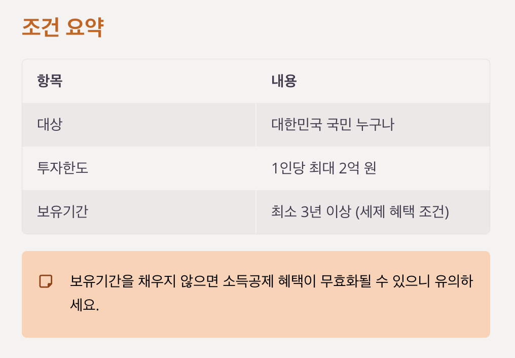 | 보유기간 | 최소 3년 이상 (세제 혜택 조건) |