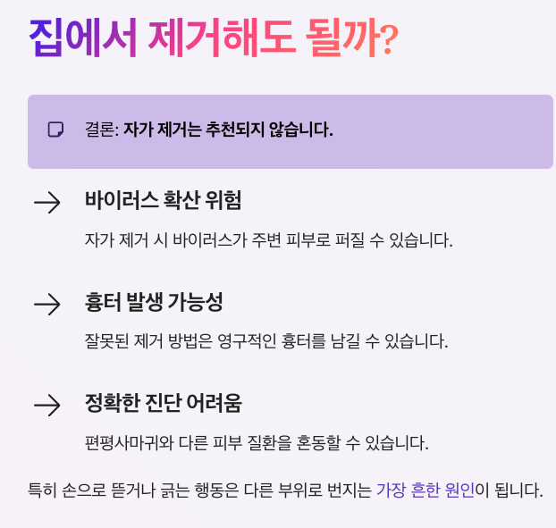 결론부터 말하면 자가 제거는 추천되지 않습니다.