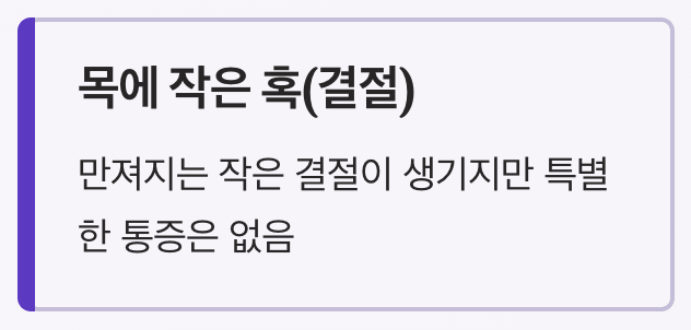 - 목에 작은 혹(결절)이 만져짐