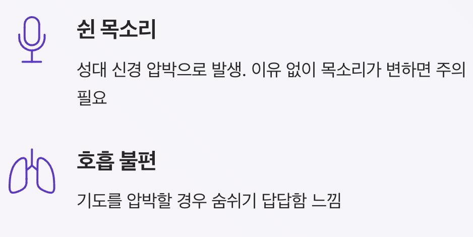 - 성대 신경 압박으로 인해 발생