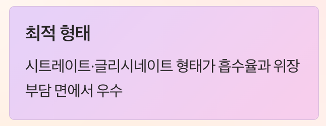 흡수율과 위장 부담을 고려하면 시트레이트나 글리시네이트 형태가 일반적으로 선호됩니다.
