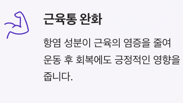 | 항염 효과 | 통증 완화 | 염증 감소 | 관절통 있는 경우 |