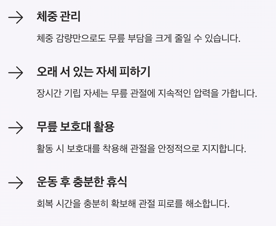 - 체중 관리 (무릎 부담 감소)