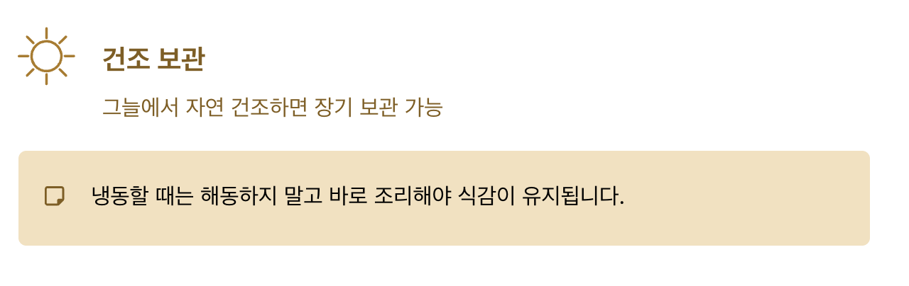 | 그늘에서 자연 건조 | 장기 보관 가능 |