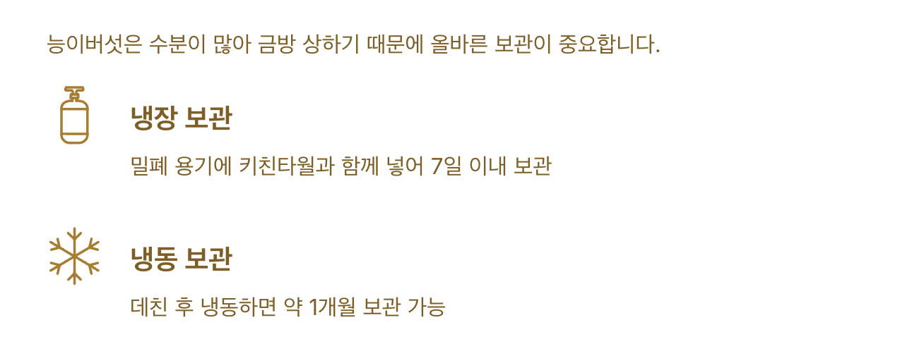 능이버섯은 수분이 많아 금방 상하기 때문에 올바른 보관이 중요합니다.