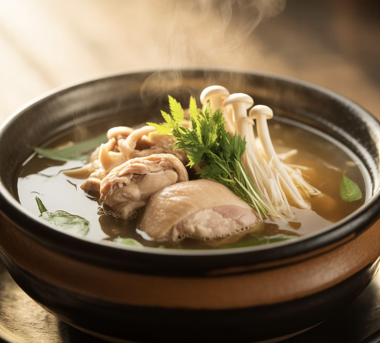 닭고기의 담백함과 능이버섯의 향이 어우러지면 깊은 국물 맛이 납니다.