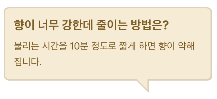 Q. 향이 너무 강한데 줄이는 방법은?