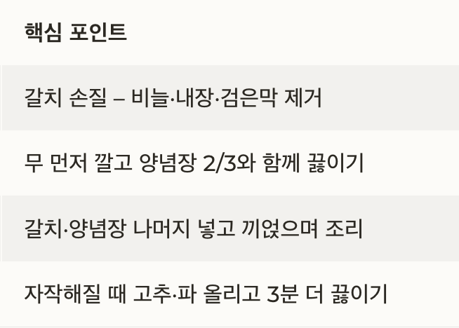 갈치조림 황금레시피 요약표