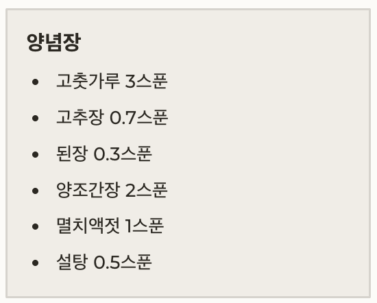 재료 분량 (밥숟가락 기준)