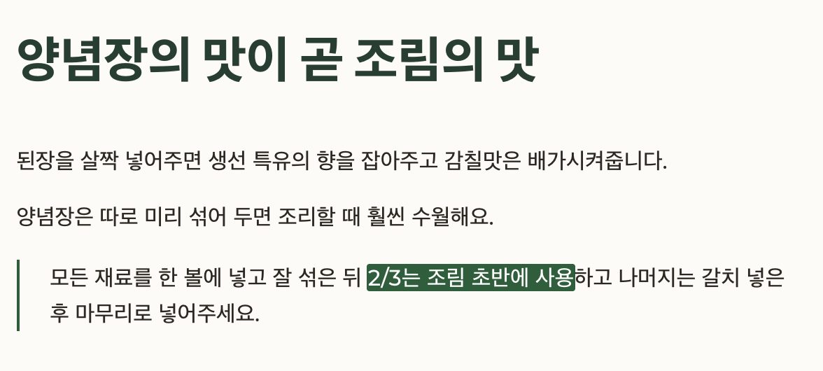양념장의 맛이 곧 조림의 맛!