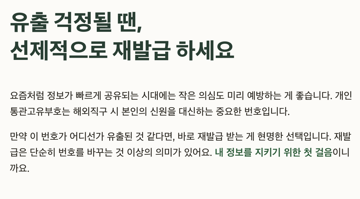 "개인 정보가 걱정될 땐? 망설이지 말고 개인통관고유부호 재발급 받으세요!"
