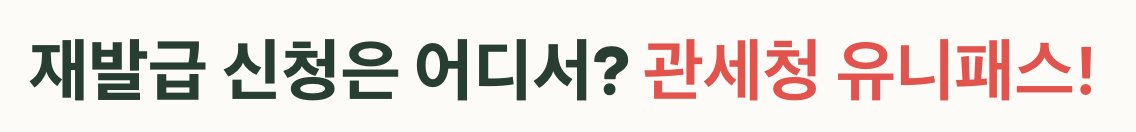 재발급 절차는 관세청 전자통관시스템인 유니패스에서 할 수 있습니다.