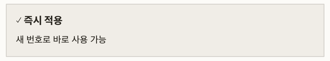 다 끝나면 새 부호가 바로 생성되며, 기존 번호는 더 이상 사용할 수 없어요.