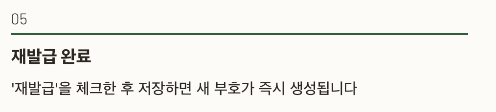 | 5단계 | ‘재발급’ 체크 후 저장 |