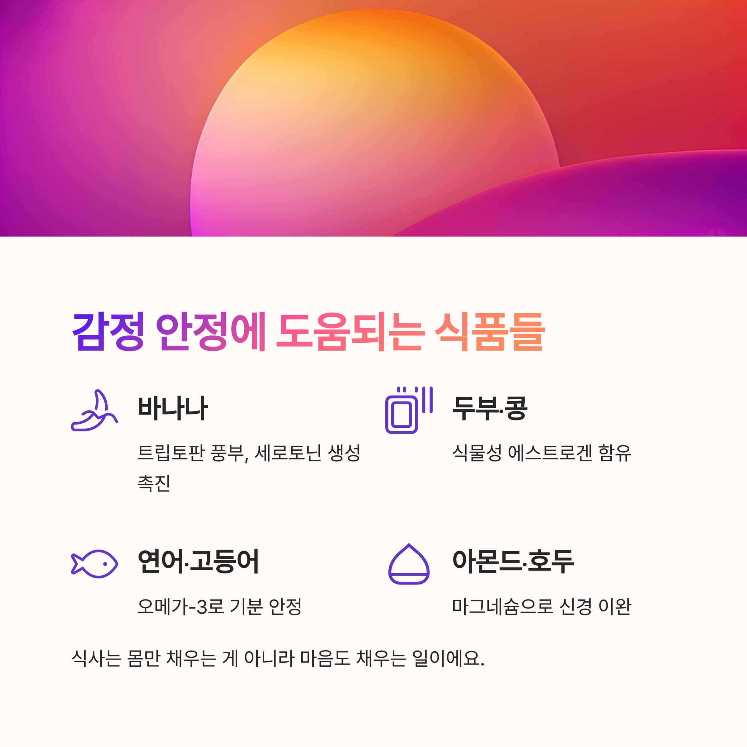 | 연어·고등어 | 오메가-3로 기분 안정에 도움 |