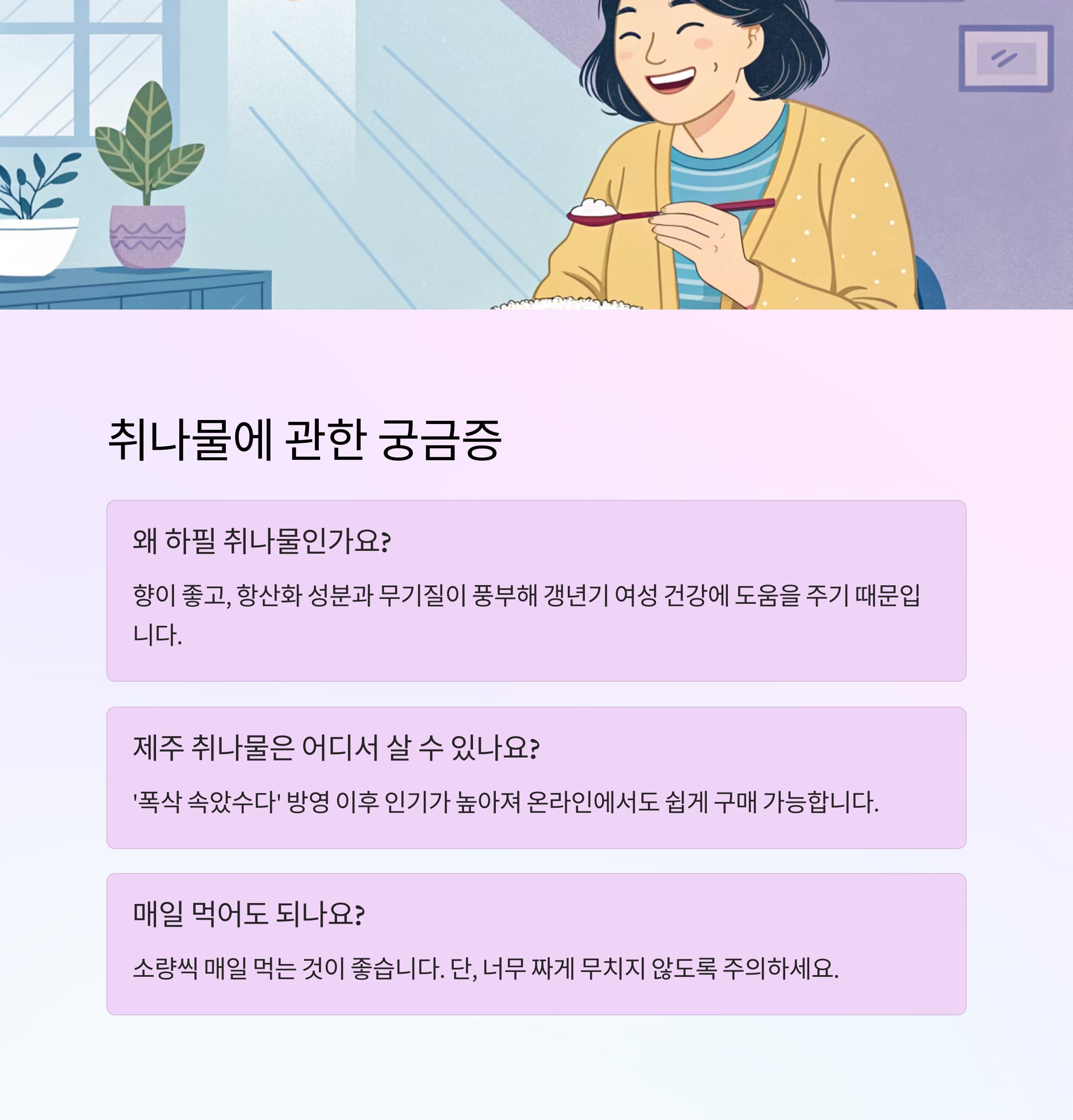 Q&A: 갱년기 나물로 취나물은 왜 추천되나요?