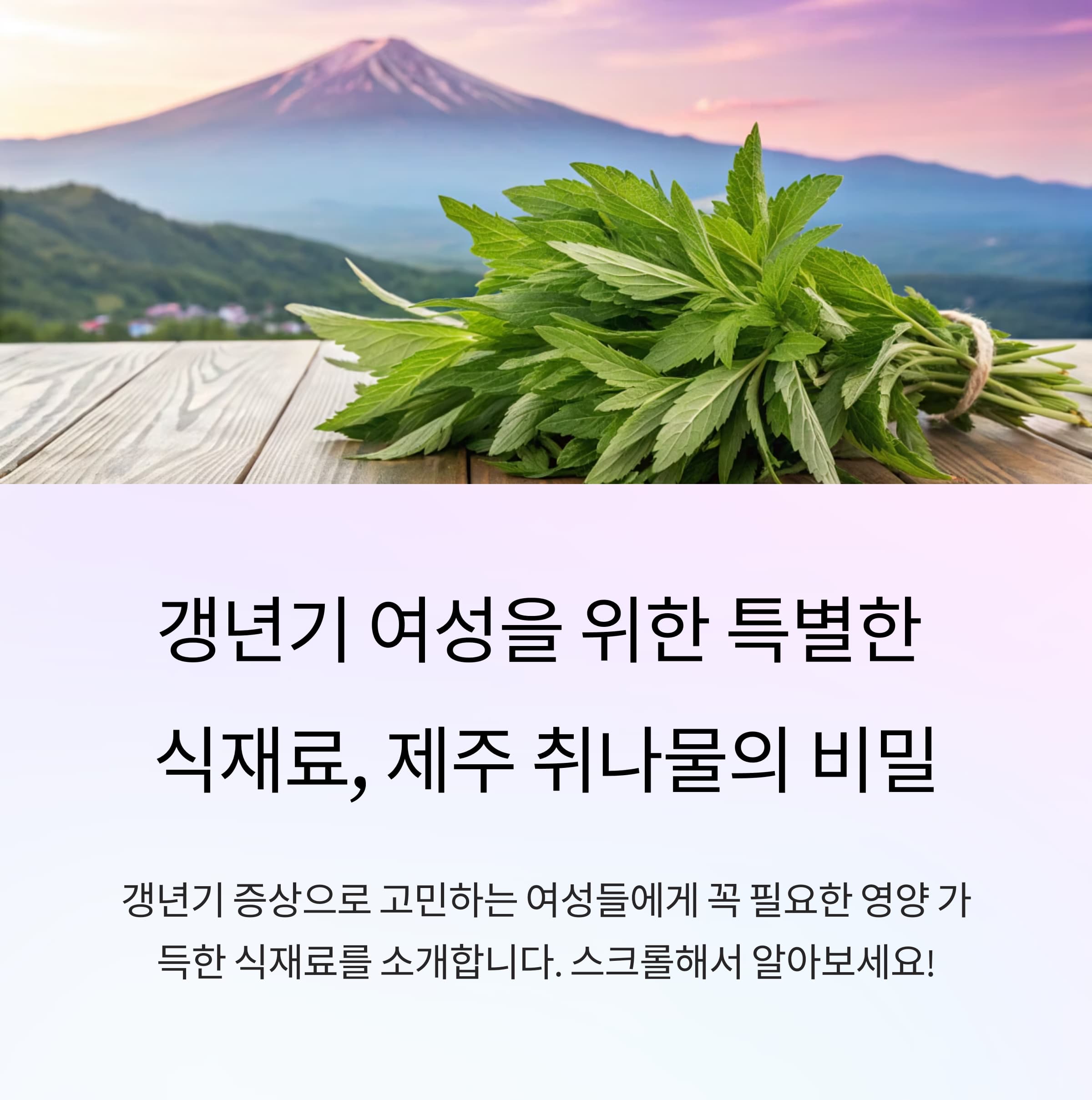 이 글에서는 취나물이 갱년기에 어떤 도움을 주는지, 제주산이 특별한 이유, 그리고 맛있게 무치는 방법까지 알려드립니다.