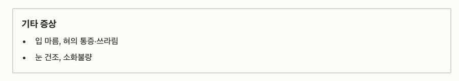 | 7. 기타 | 입 마름 | 수분 섭취 부족해도 자주 입이 마름 |
