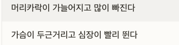 | 머리카락이 가늘어지고 많이 빠진다 | |