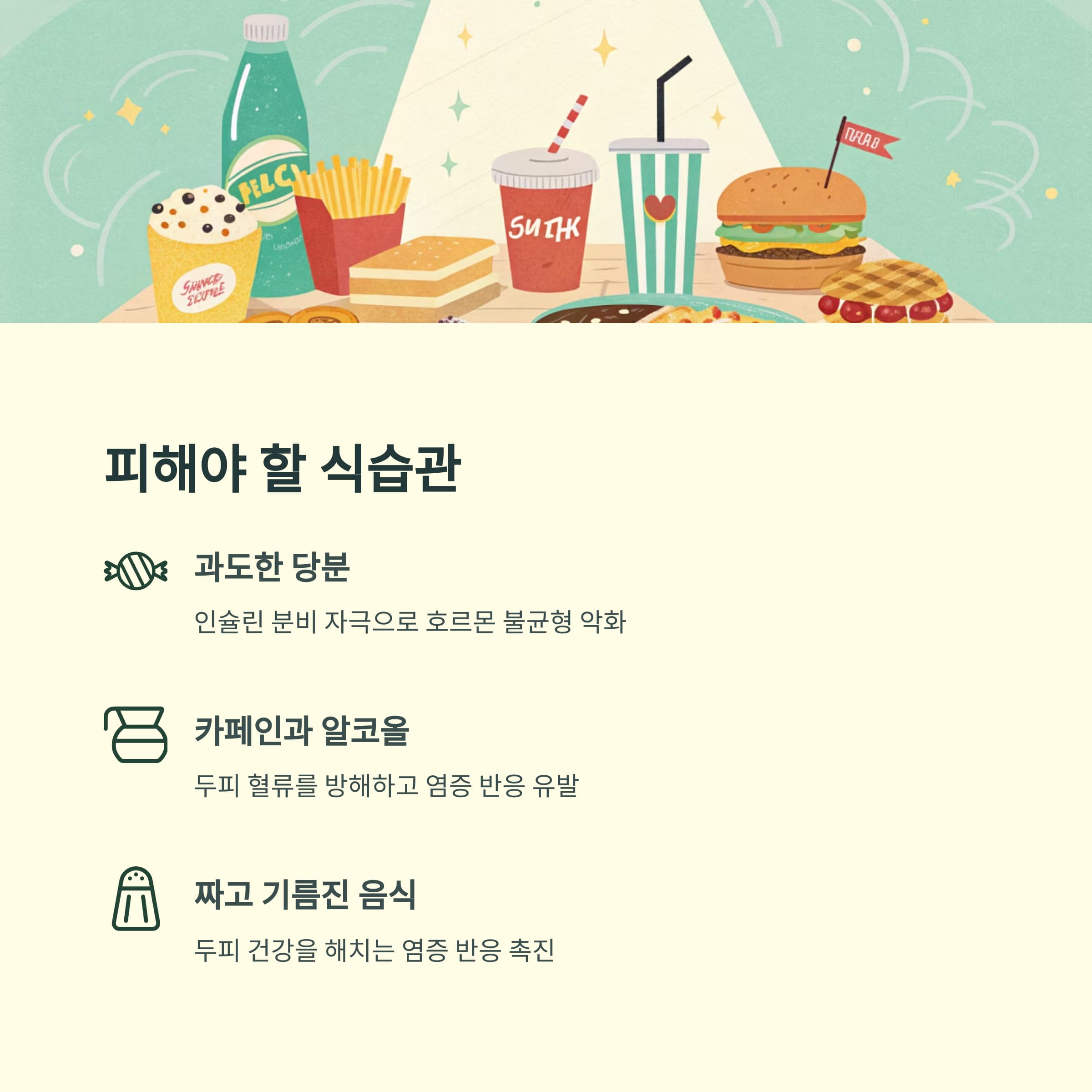 또한 카페인, 알코올, 짜고 기름진 음식도 두피 혈류를 방해하고