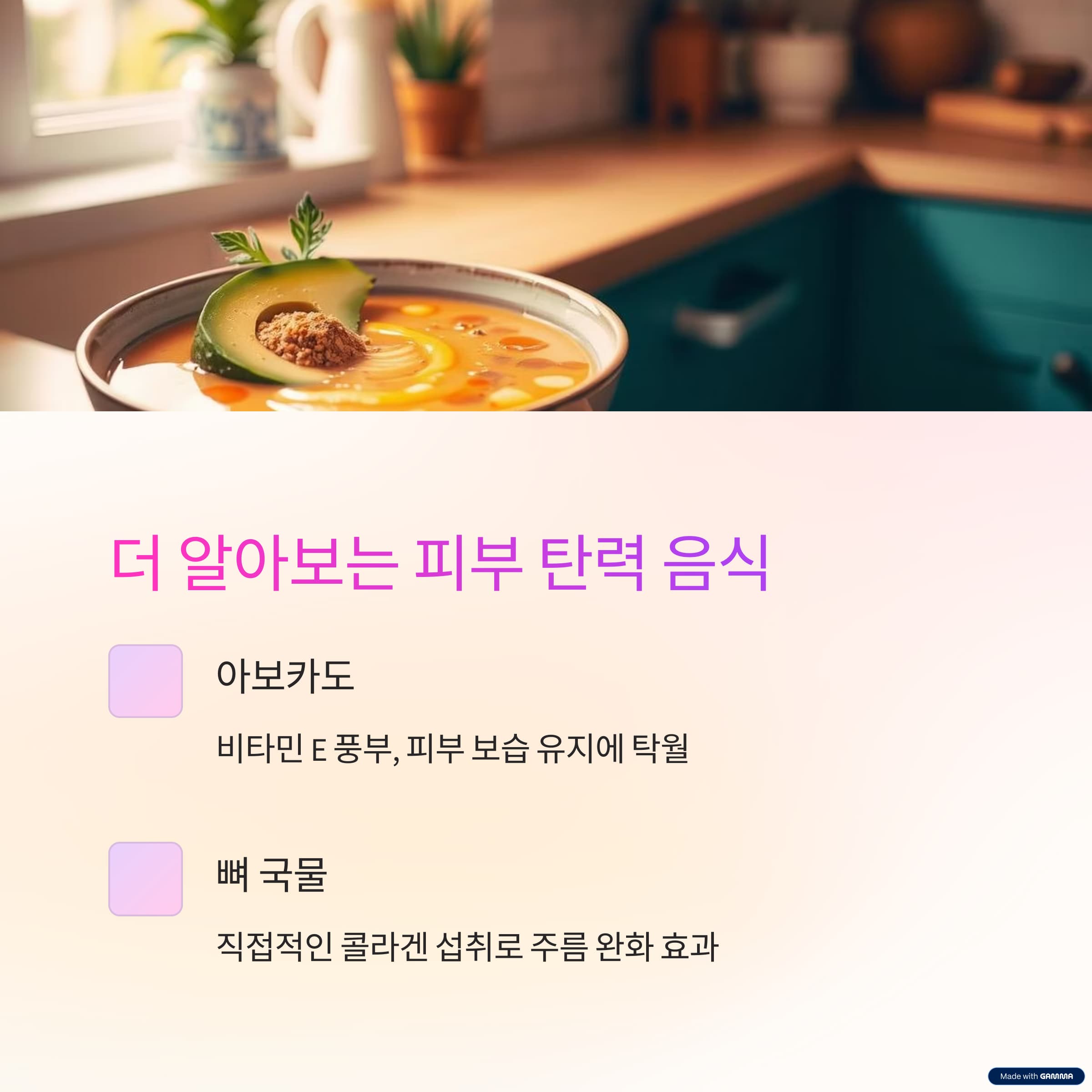 • 뼈 국물: 직접적인 콜라겐 섭취로 주름 완화 효과