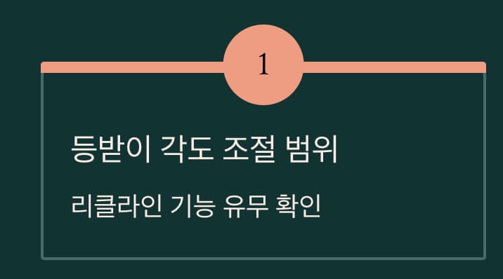 - 등받이 각도 조절 범위 (리클라인 기능 유무)