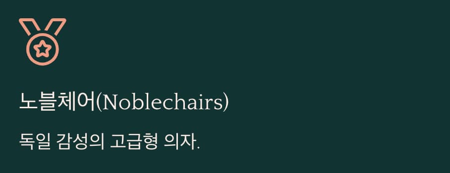 - 노블체어(Noblechairs): 독일 감성의 고급형 의자.