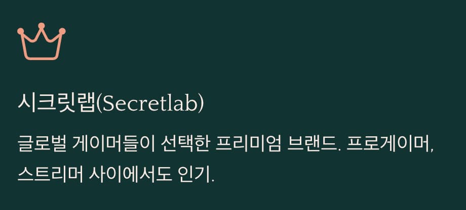 - 시크릿랩(Secretlab): 글로벌 게이머들이 선택한
