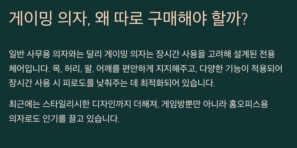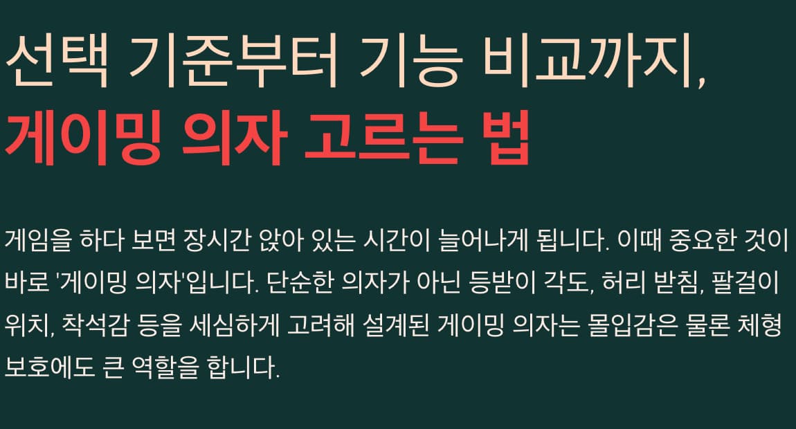 게이밍 의자를 고를 때는 단순히 브랜드나 디자인만 볼 것이 아니라,