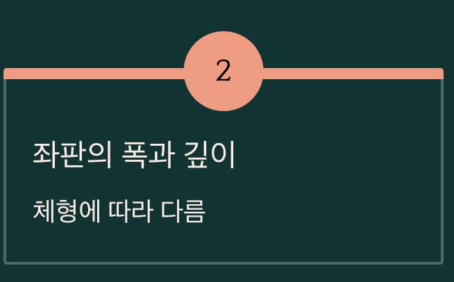 - 좌판의 폭과 깊이 (체형에 따라 다름)