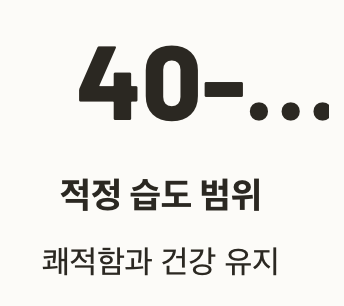적정 습도는 40~60%, 이 범위 안에서 유지해 주세요.