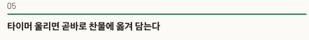 - 타이머 울리면 곧바로 찬물에 옮겨 담는다