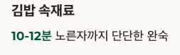| 김밥 속재료 | 10~12분 | 노른자까지 단단한 완숙 |