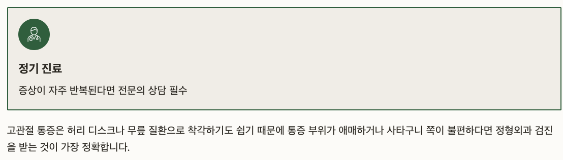 | 휴식과 온찜질 | 관절 부담을 줄이고, 혈류를 개선 |