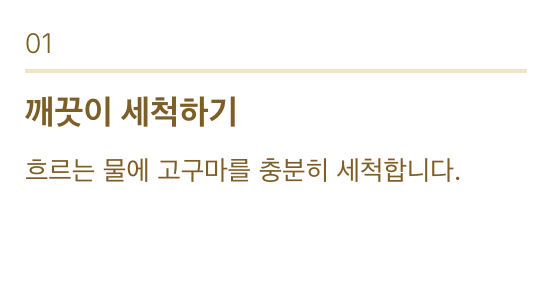 먼저 깨끗한 고구마를 준비해 흐르는 물에 충분히 세척합니다.