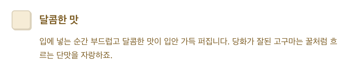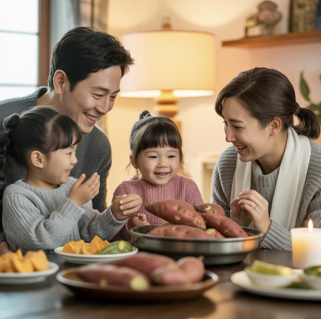 입에 넣는 순간 부드럽고 달콤한 맛이 입안 가득 퍼집니다. 당화가 잘된 고구마는 꿀처럼 흐르는 단맛을 자랑하죠.