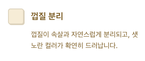 다 익은 고구마는 껍질이 속살과 자연스럽게 분리되고, 샛노란 컬러가 확연히 드러납니다.