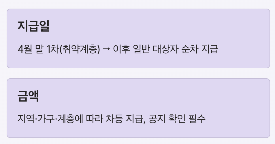이번 정책은 한 번에 지급되는 방식이 아니라 2단계로 나누어 진행되는 특징이 있습니다.