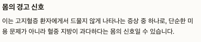 단순한 미용 문제가 아니라 혈중 지방이 과다하다는 몸의 신호일 수 있습니다.