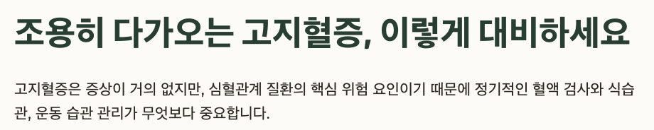 고지혈증은 증상이 거의 없지만, 심혈관계 질환의 핵심 위험 요인이기 때문에