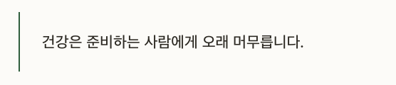 건강은 준비하는 사람에게 오래 머무릅니다.