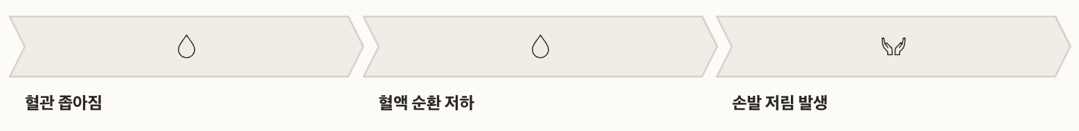 혈관이 좁아지면 손발 끝까지 혈액이 잘 흐르지 않게 되고,