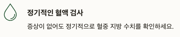 정기적인 혈액 검사와 식습관, 운동 습관 관리가 무엇보다 중요합니다.