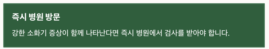 복통, 메스꺼움, 구토 등 강한 소화기 증상이 함께 나타난다면
